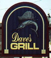 Fabricated with common building materials, this sign has elegant balance combined with dimensional elements. The lettering is fabricated from 3/4" Signply and gilded with 23kt. gold leaf. A hand spun burnish was applied. The fish graphic is a hand painted applique. | ![]() |