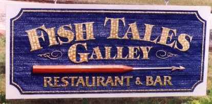 This is a double sided sandblasted sign with 23kt. gold leaf lettering and pinstripe. The harpoon is a hand carved applique | ![]() |