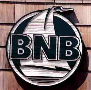 This logo for the Bridgehampton National Bank measures approximately 18" in diameter. It is made from sandbalasted redwood.