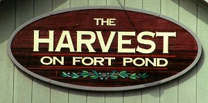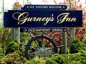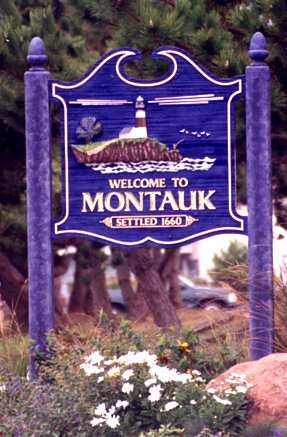 This sandblasted redwood sign features hand carved (incised) lettering. The graphic of the Montauk Lighthouse, cliffs, and fisherman is a hand carved High Density Urethane applique. We gild the lettering and the pinstripe with 23kt. gold leaf.