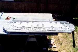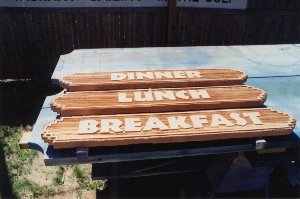 These are the sub-signs which hang below the main sign. They are double sided and have just been sand blasted. |